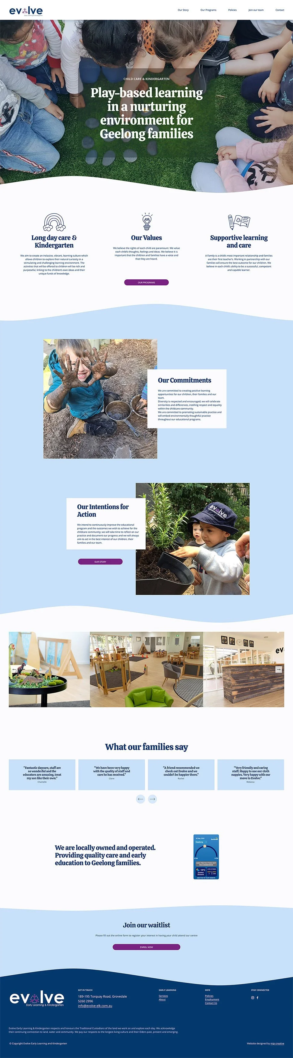 The team at Evolve Early Learning & Kindergarten aim to create an inclusive, vibrant, learning culture which allows children to explore their natural curiosity in a stimulating and challenging learning environment. The activities that will be offered to children will be rich and purposeful, linking to the children’s own ideas and their unique funds of knowledge.